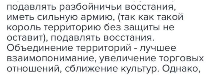 Дайте развёрнутый ответ: что даёт государству и жителям страны объединение и сильная власть короля? (По истории)