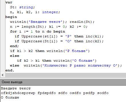 Напишите программу, которая определит, каких букв в строке с русским текстом больше: «р» или «О» (см. пример 9.3).