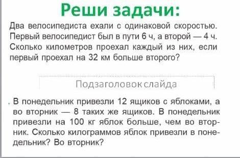 1. 6- 4= 2 - на 2 км 1-ый велосипедист проехал больше