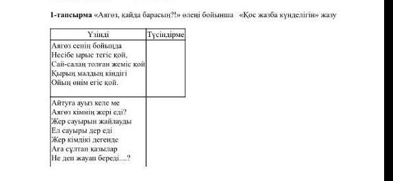 1-тапсырма аягоз кайда барасын олен бойынша кос жаза кунделигин жазу