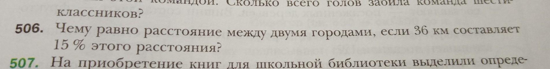 506. Чему равно расстояние между двумя городами, если 36 км составляет 15 % этого расстояния?