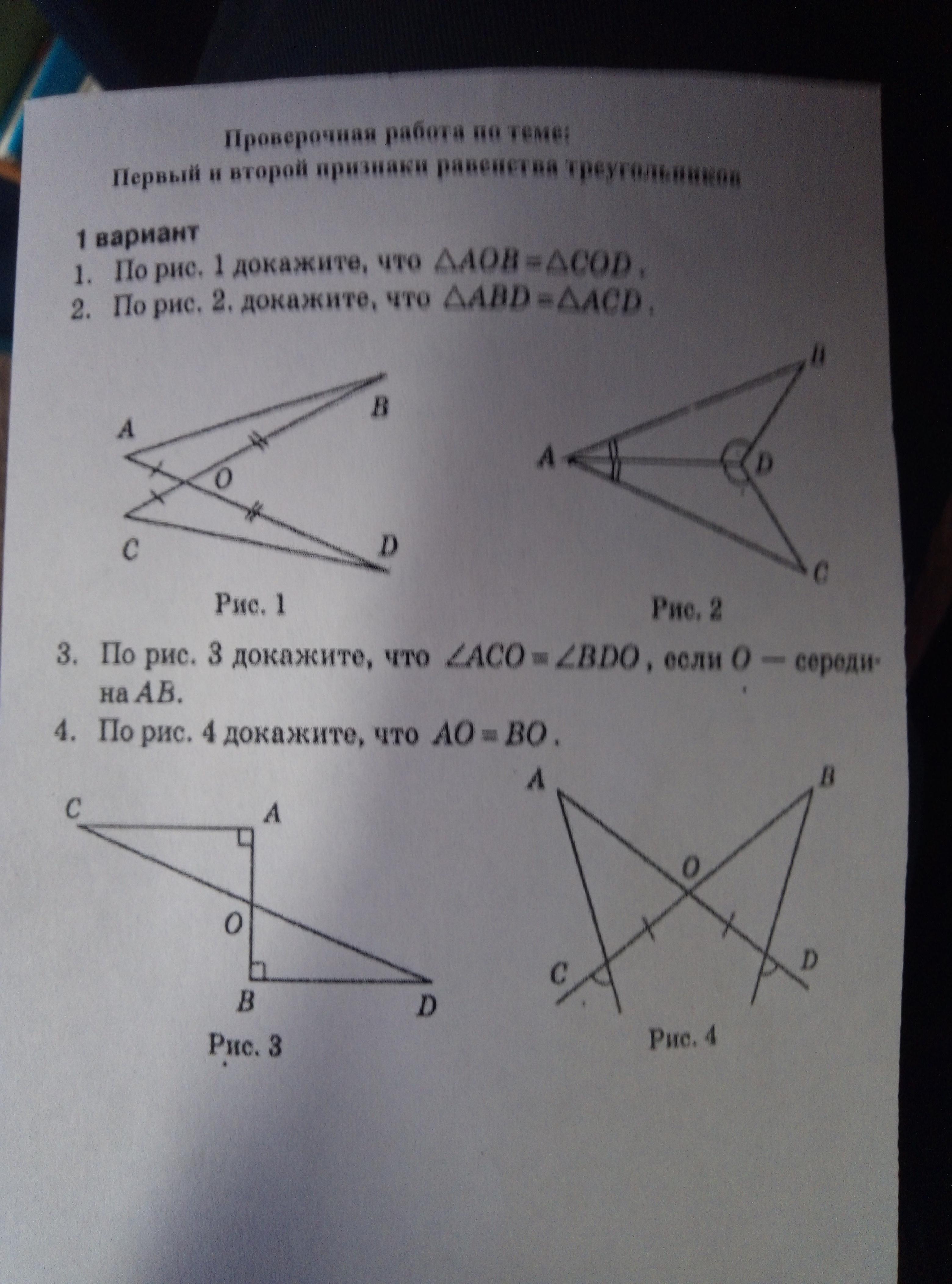 Проверочная работа по теме первый и второй признаки равенства треугольников помогите!!