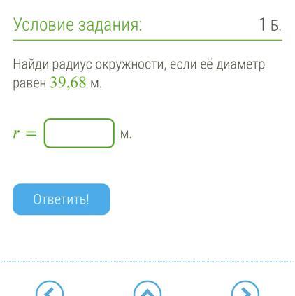 Найди радиус окружности, если её диаметр равен 39,68 м.