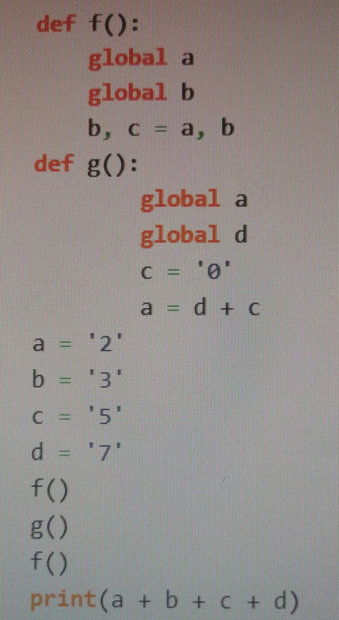 После функции g (изменяется значение переменной a, значение переменной с в программе остаётся без изменений, т.к. это локальная переменная и из функции не передаётся):