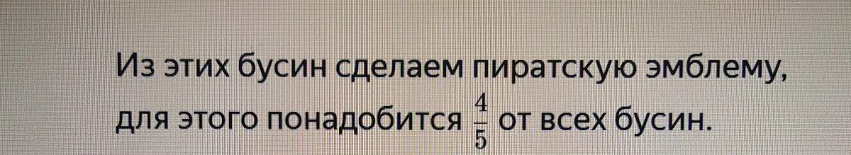 Из этих бусин сделаем пиратскую эмблему, для этого понадобится от всех бусин. 4/5 (4 пятых)
