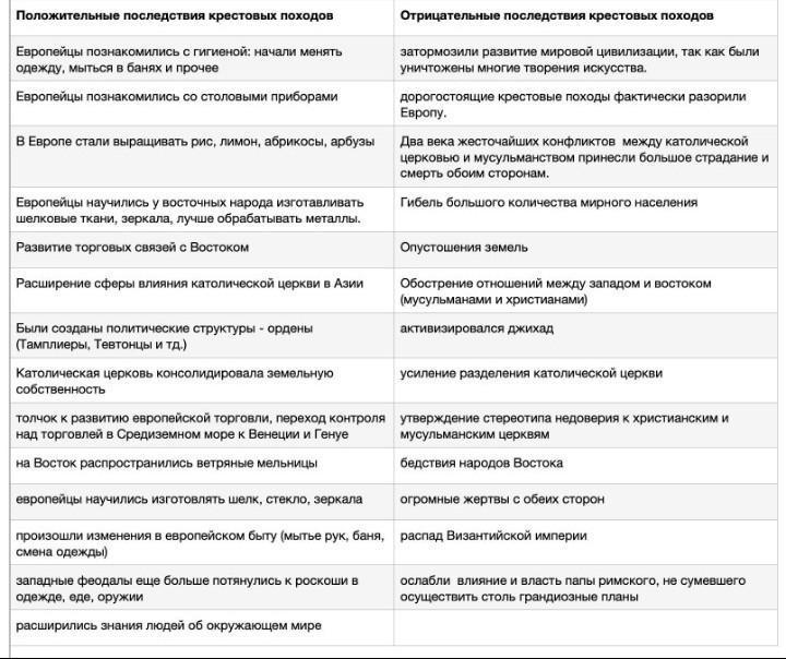 Вот таблица крестовых походов