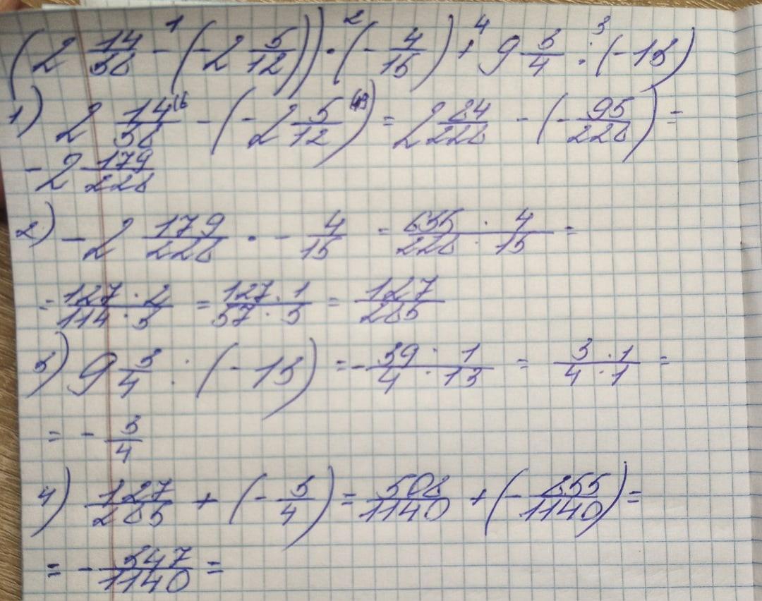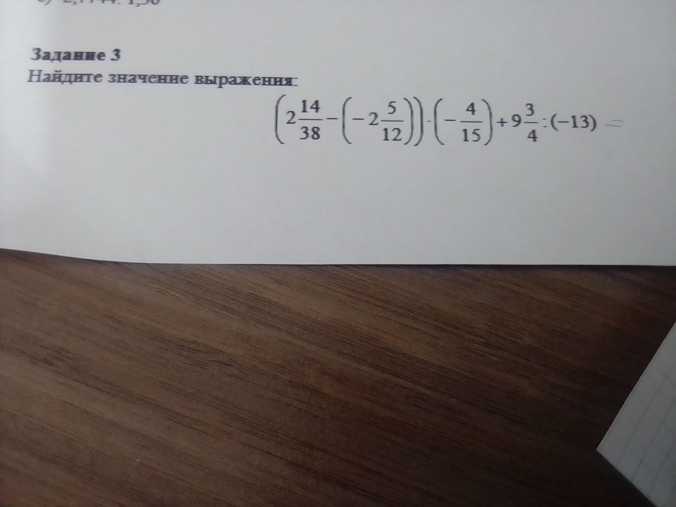 Задание 3 Найдите значение выражения: (2 14 38 -(-2 5 12 ))*(- 4 15 )+9 3 4 :(-13)...