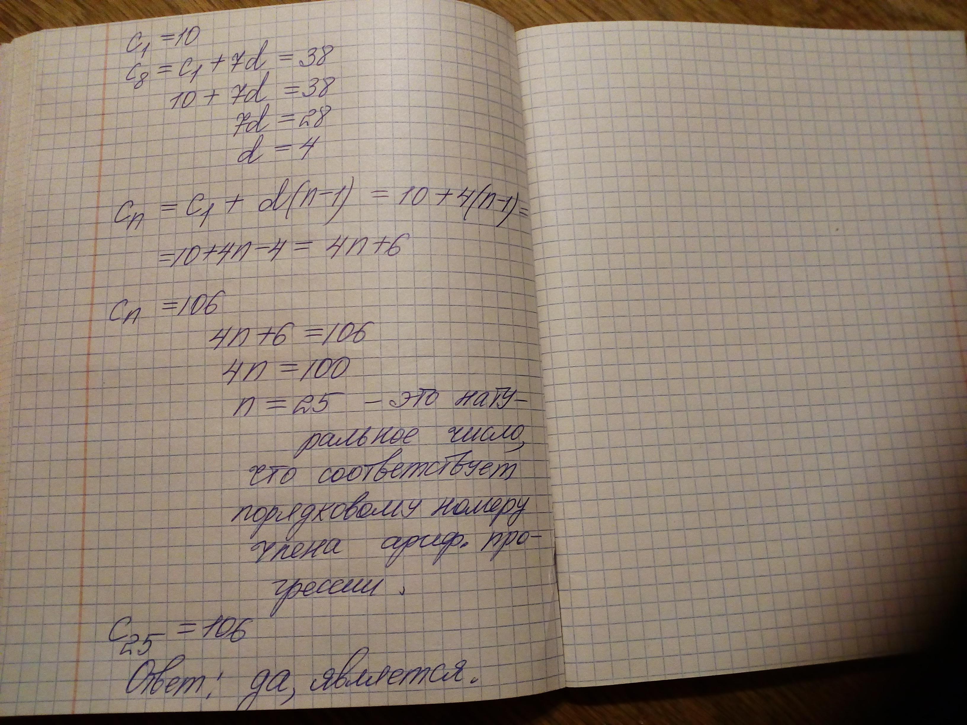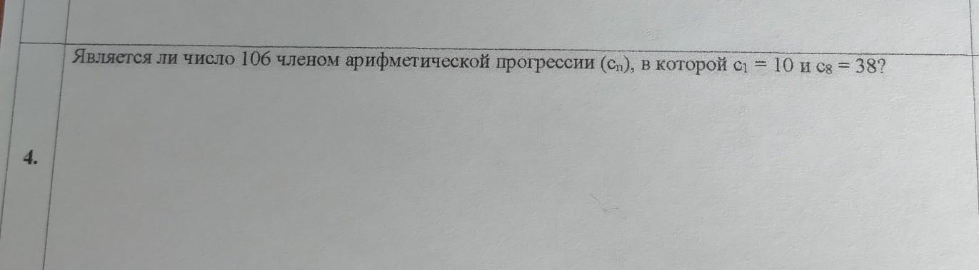 является ли число 106 членом арифметической прогрессии, если а1= 10 а8=38
