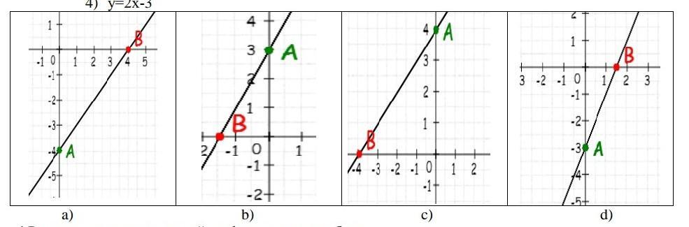 Установите соответствие между функциями и их графиками: 1) у= 2х+3 2) у= х+4 3) у=х-4 4) у=2х-3