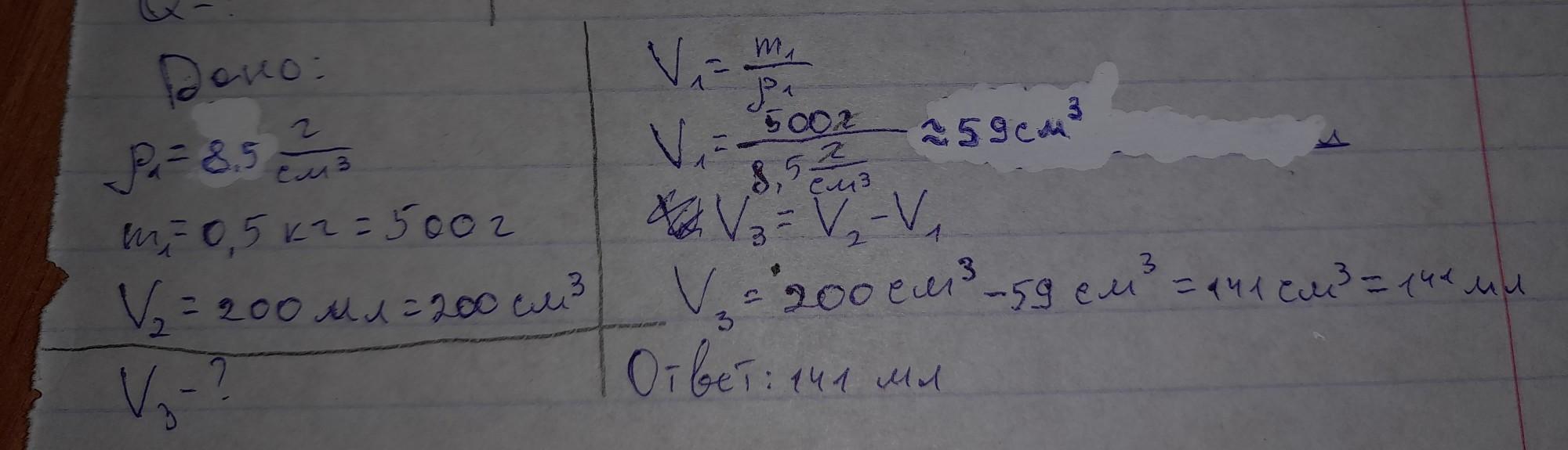 V₁ = m / ρ = 500 / 8,5 ≈ 60 см³