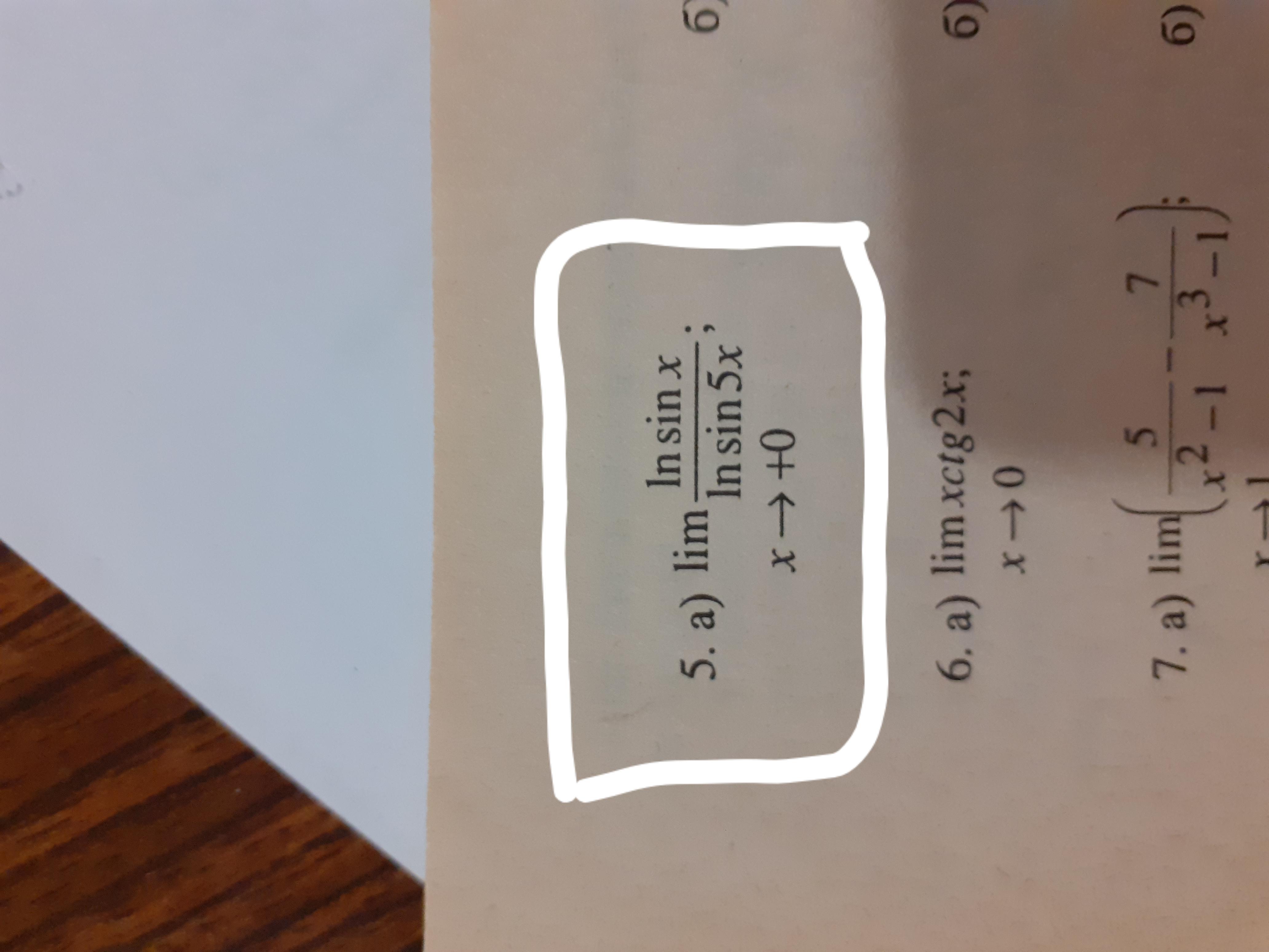 Помогите, пожалуйста, решить предел с помощью правила Лопиталя. lim( при x стремящ. к +0) ln×sinx/ln×sin5x