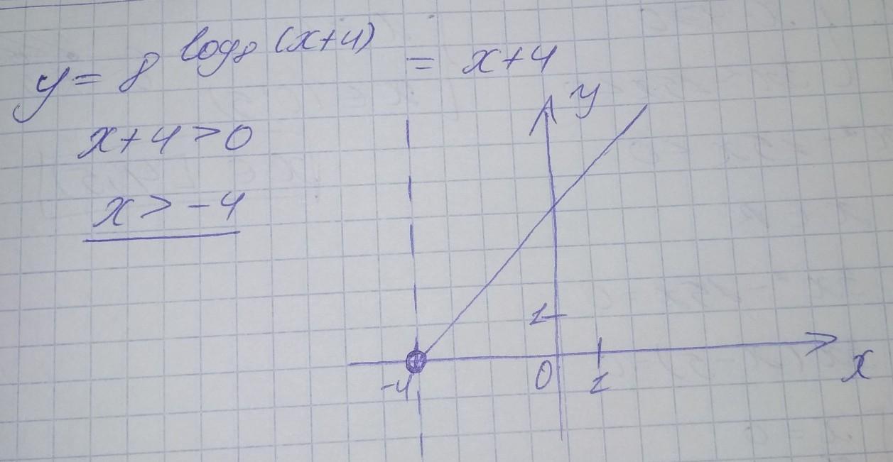 Эквивалентно: y = x+4 c областью определения x+4>0 или x>-4