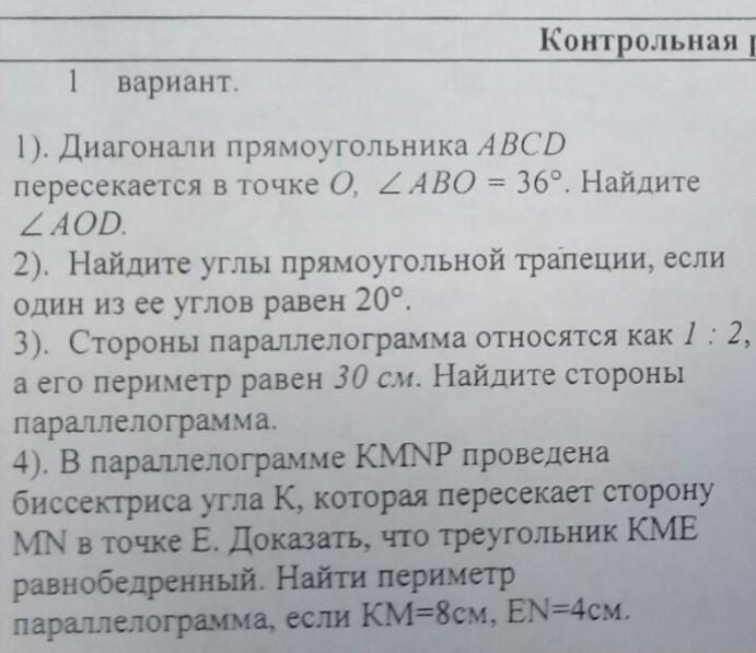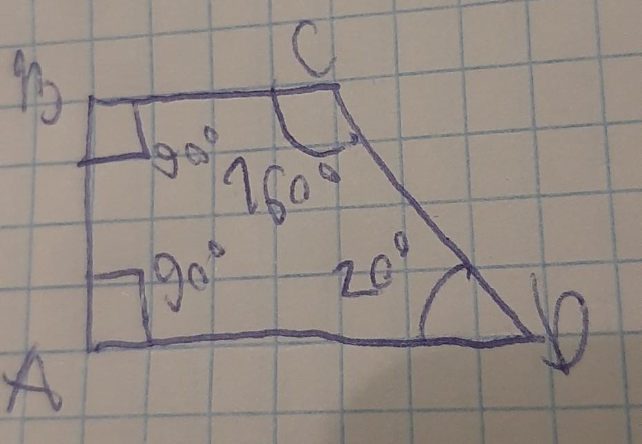 2) у прямоугольной трапеции всегда 2 угла по 90 градусов и 20 градусов нам дан угол по условию а последний угол = 360-(первый угол+второй угол+третий угол) = 360-(90+90+20)=160