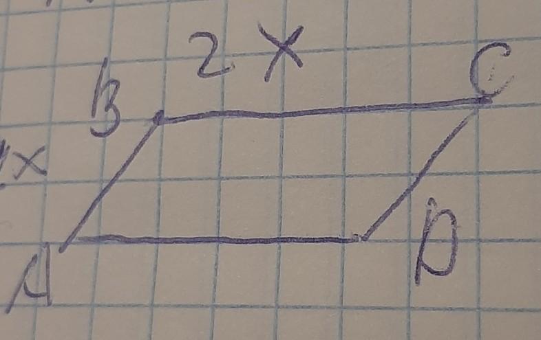 3) стороны параллелограма относятся 1:2 значит мы можем взять меньшую сторону за x, а большую за 2x