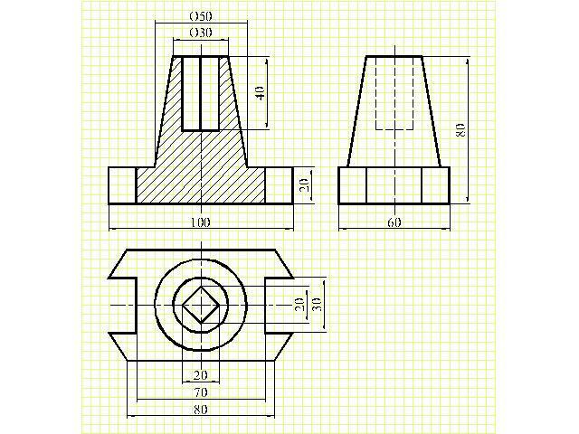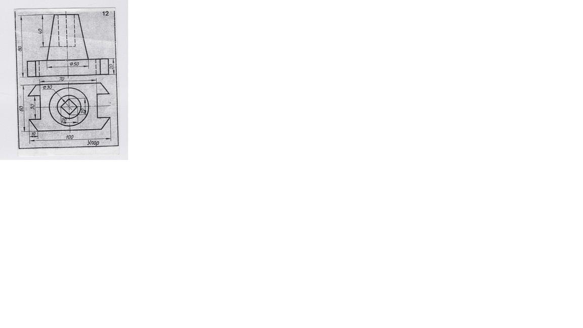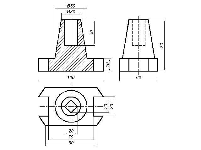 Черчение. По двум видам детали построить третий. Выполнить разрезы в изомерии с вырезом четверти