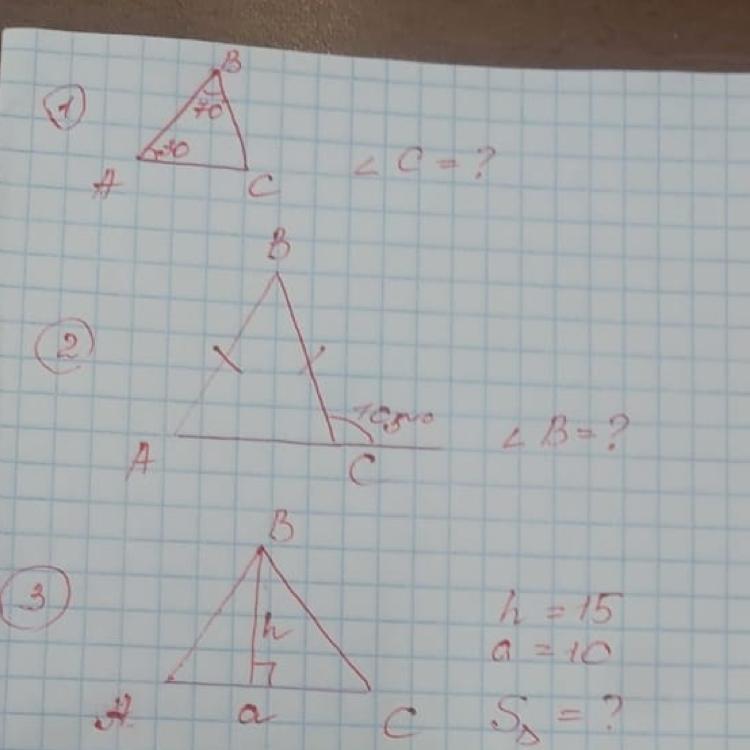 - с=180-165=15, a=15, b=180-15-15=150