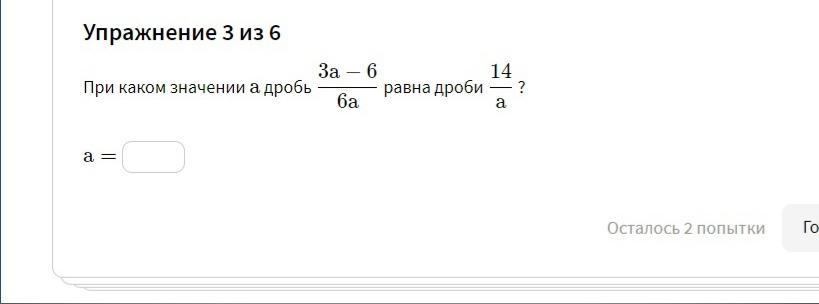 (3а-6):6а=14:а т.к на ноль делить нельзя, а не равно 0