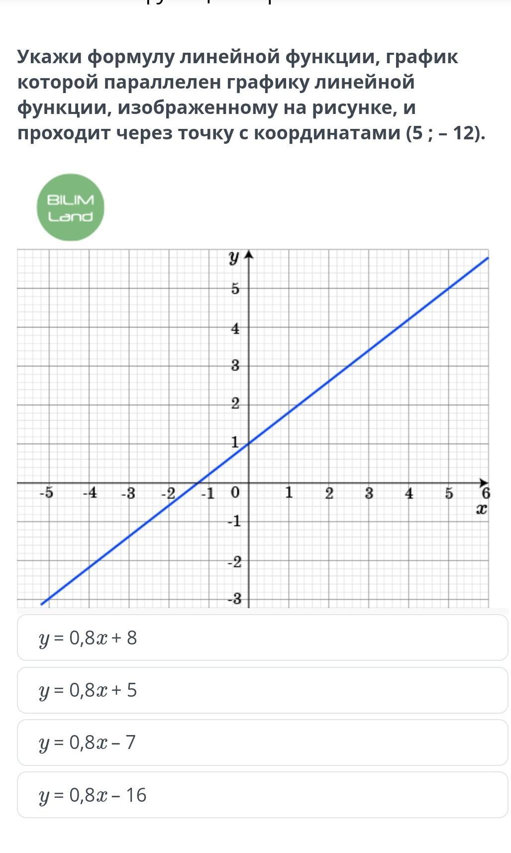 ( единственная функция, которая удовлетворяет условию: « проходит через точку (5;-12)»)
