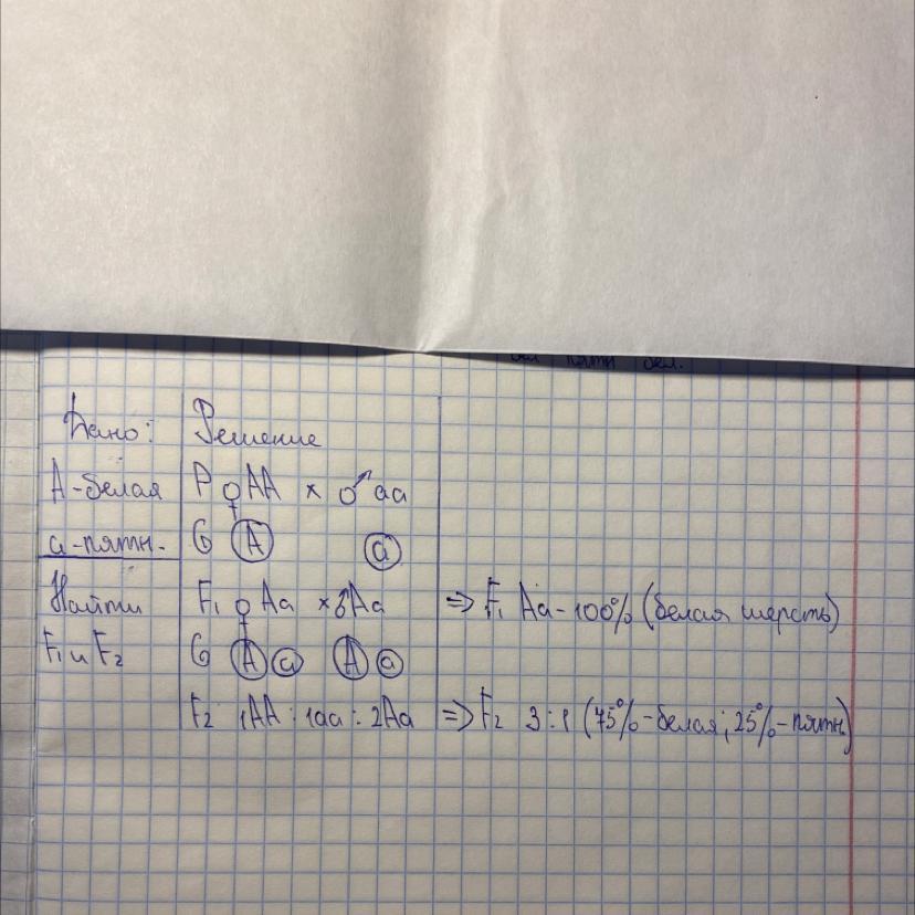 у морских свинок белая шерсть доминирует над пятнистой. Определите F1 и F2 при скрещивании белой гомозиготной самки и пятнистого самца