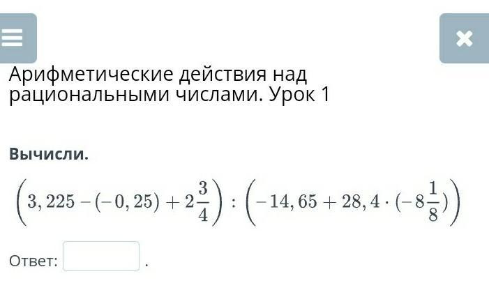 Арифметические действия над рациональными числами. Урок 1 Вычисли. Ответ:. Назад Проверить