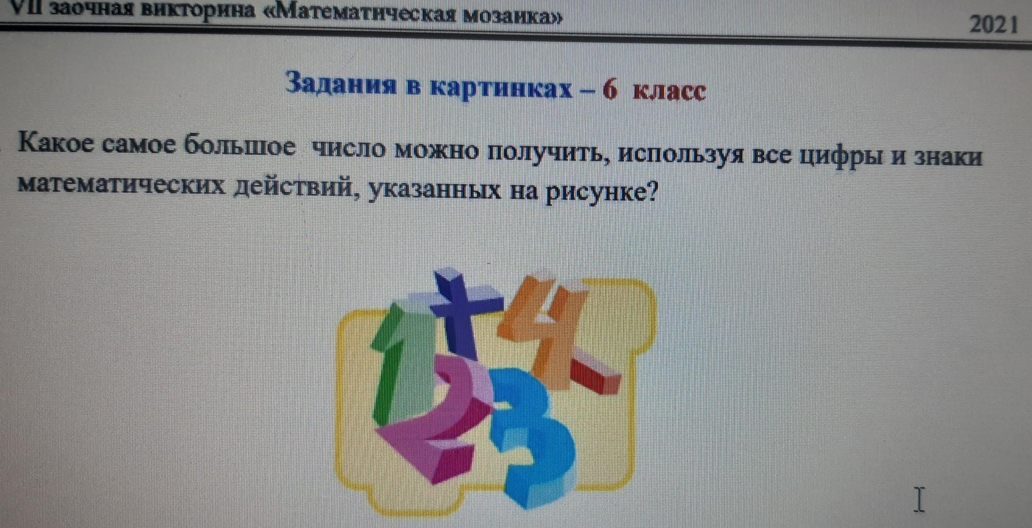 какое самое большое число можно получить, используя все цифры и знаки математических действий, указанных на рисунке?
