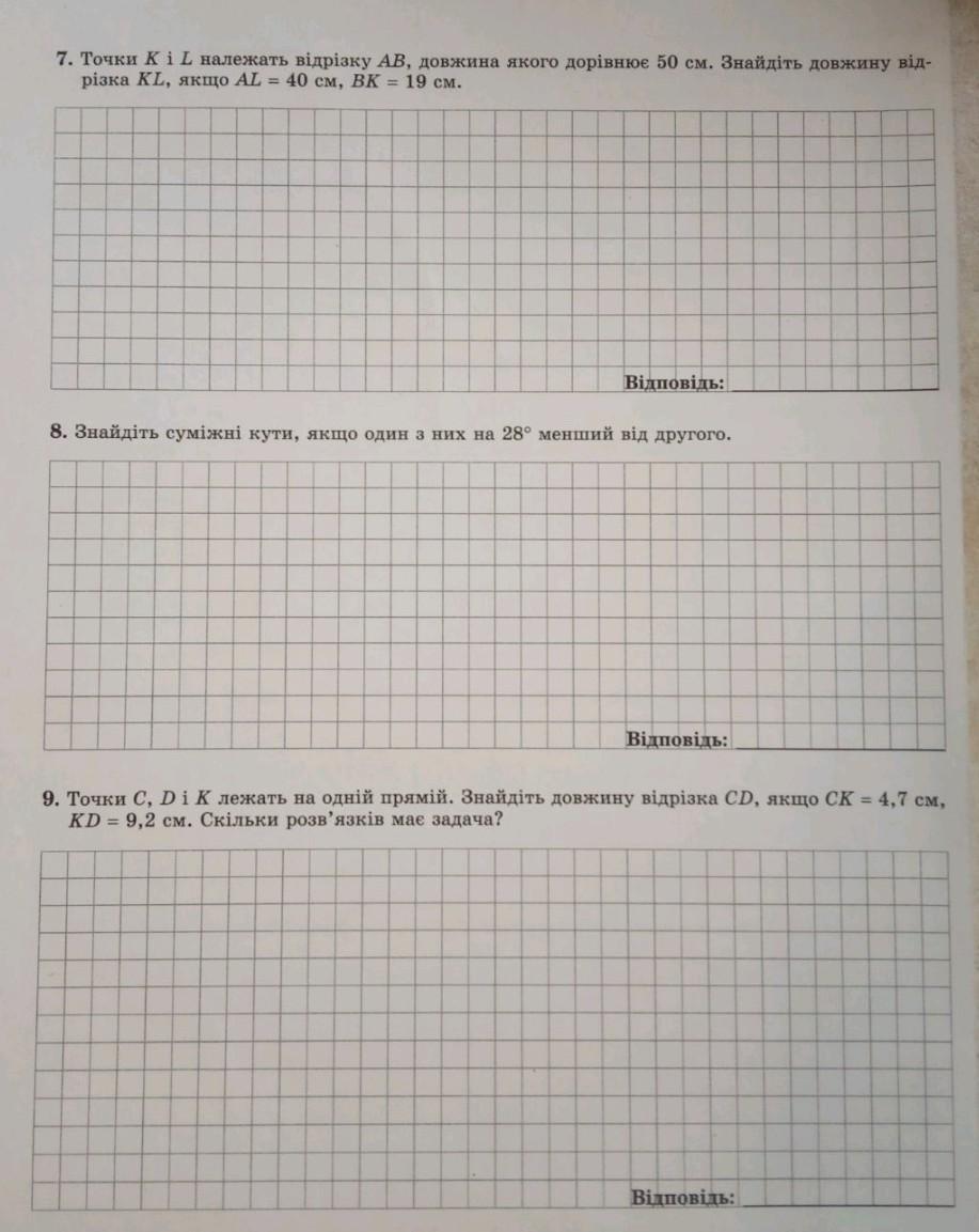 7) AB = 50 см; AL = 40 см; KB = 19 см.