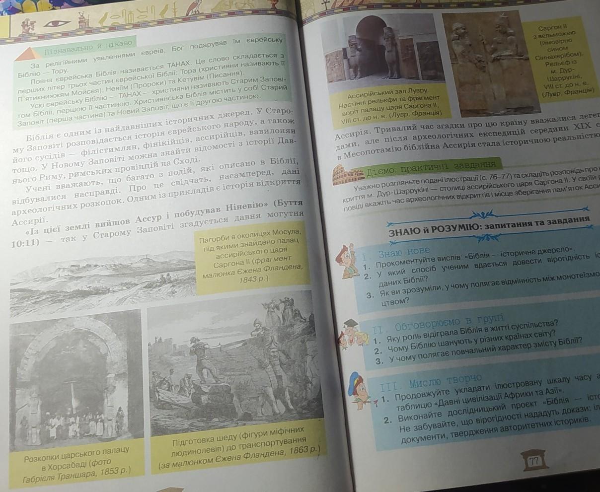 Уважно розгляньте подані ілюстрації (с. 76-77) та складіть розповідь про від криття м. Дур-Шаррукіні - столиці ассирійського царя Саргона II. У своїй роз- повіді вкажіть час археологічних відкриттів і місце зберігання пам'яток Ассирії.