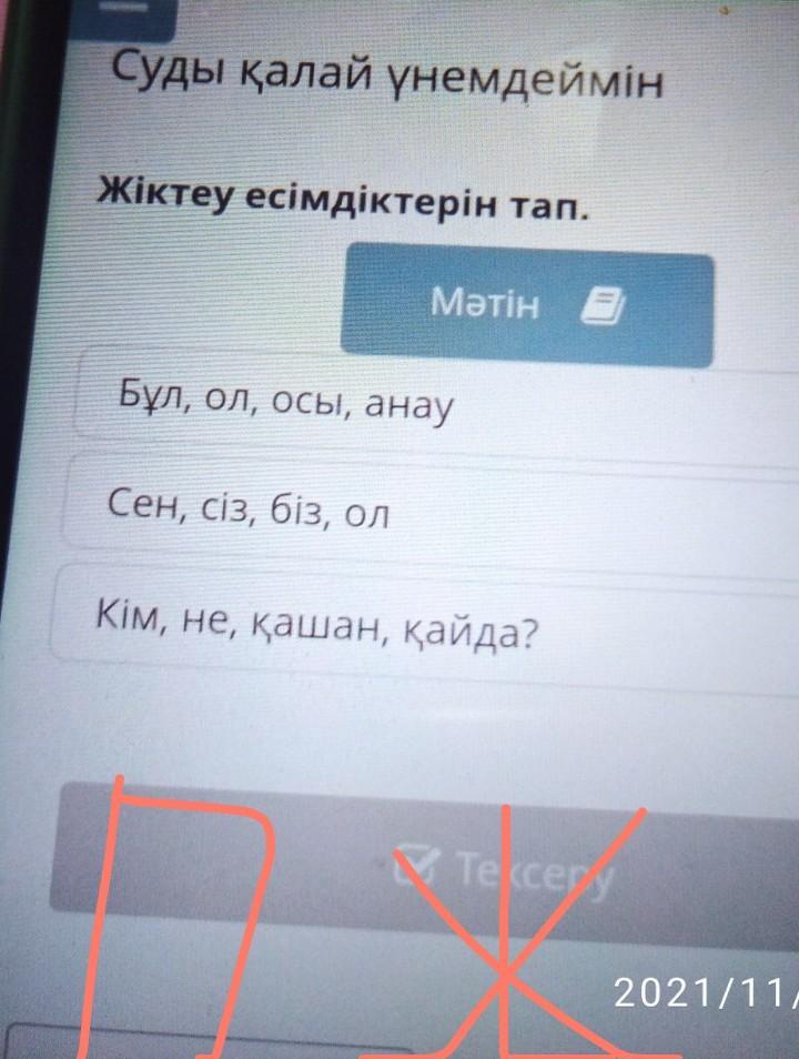Суды қалай үнемдеймін Жіктеу есімдіктерін тап. Мәтін В Бұл, ол, осы, анау Сен, сіз, біз, ол Кім, не, қашан, қайда? срочно помогите! пж пж