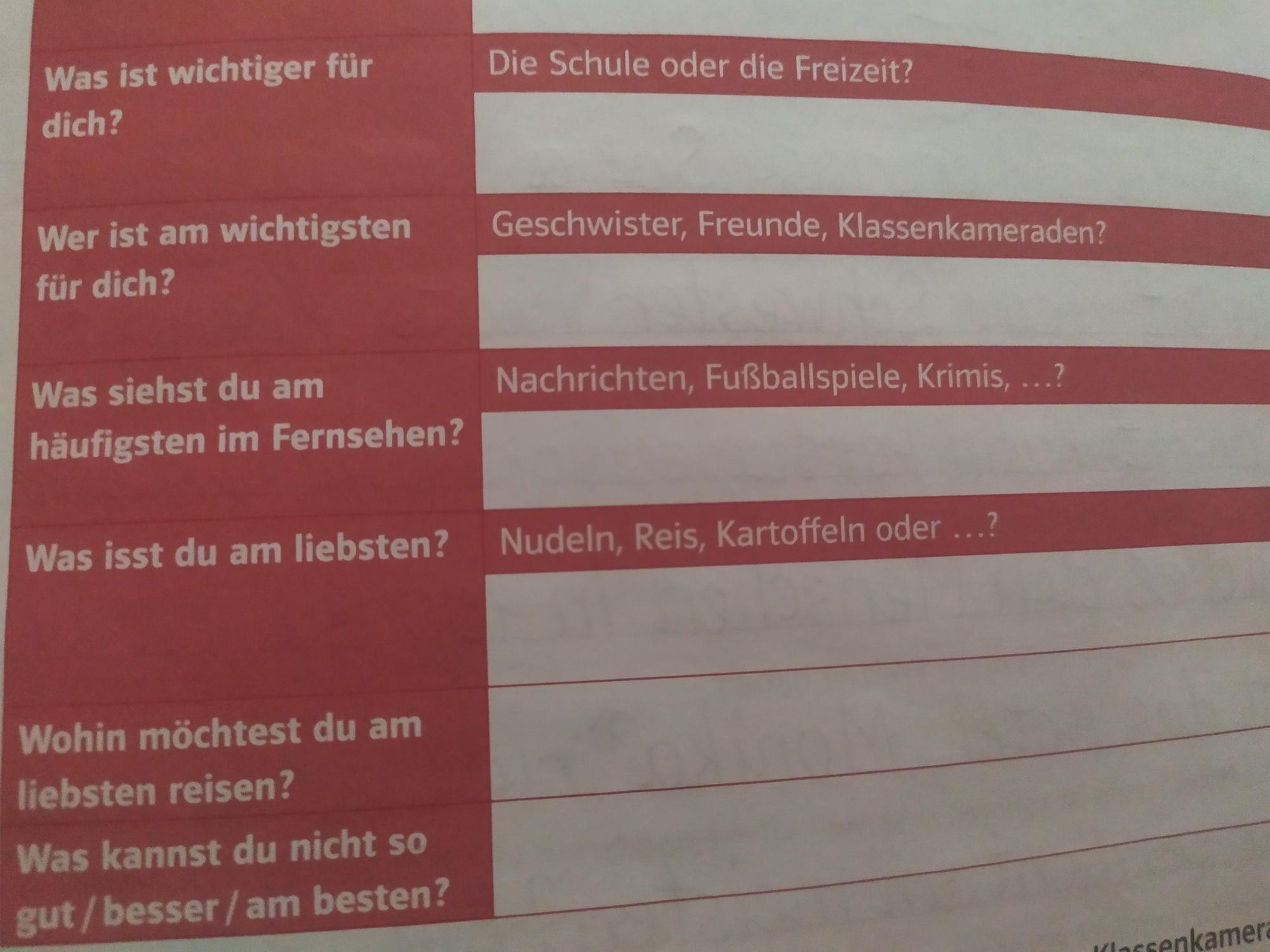 Am wichtigsten sind für mich Geschwister, Freunde und Kassenkameraden sind auch sehr wichtig.