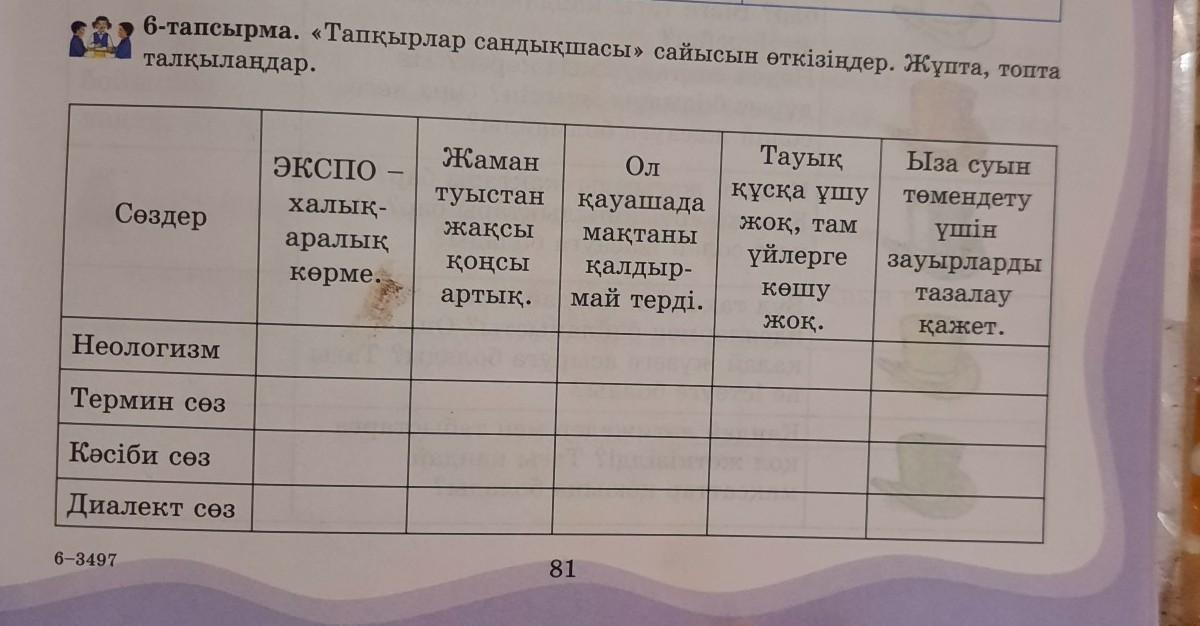 6-тапсырма. «Тапқырлар сандықшасы» сайысын өткізіңдер. Жұпта, топта талқылаңдар.