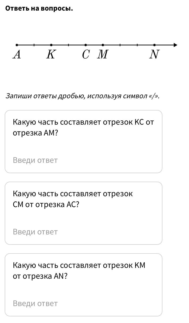 Отрезок KM равен 3 единицам, AN 8 единиц, тогда KM = 3/8 AN