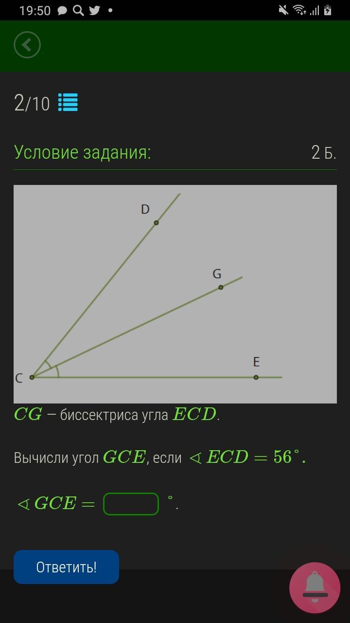 ∠GCE=56°:2=28° (по определению биссектрисы)