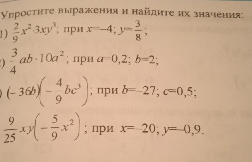 4) (9/25)xy*(-5/9)x²=-xy³/5=-(-20)³*(-0.9)/5=-(-8000)*(-0.9)/5=-1440