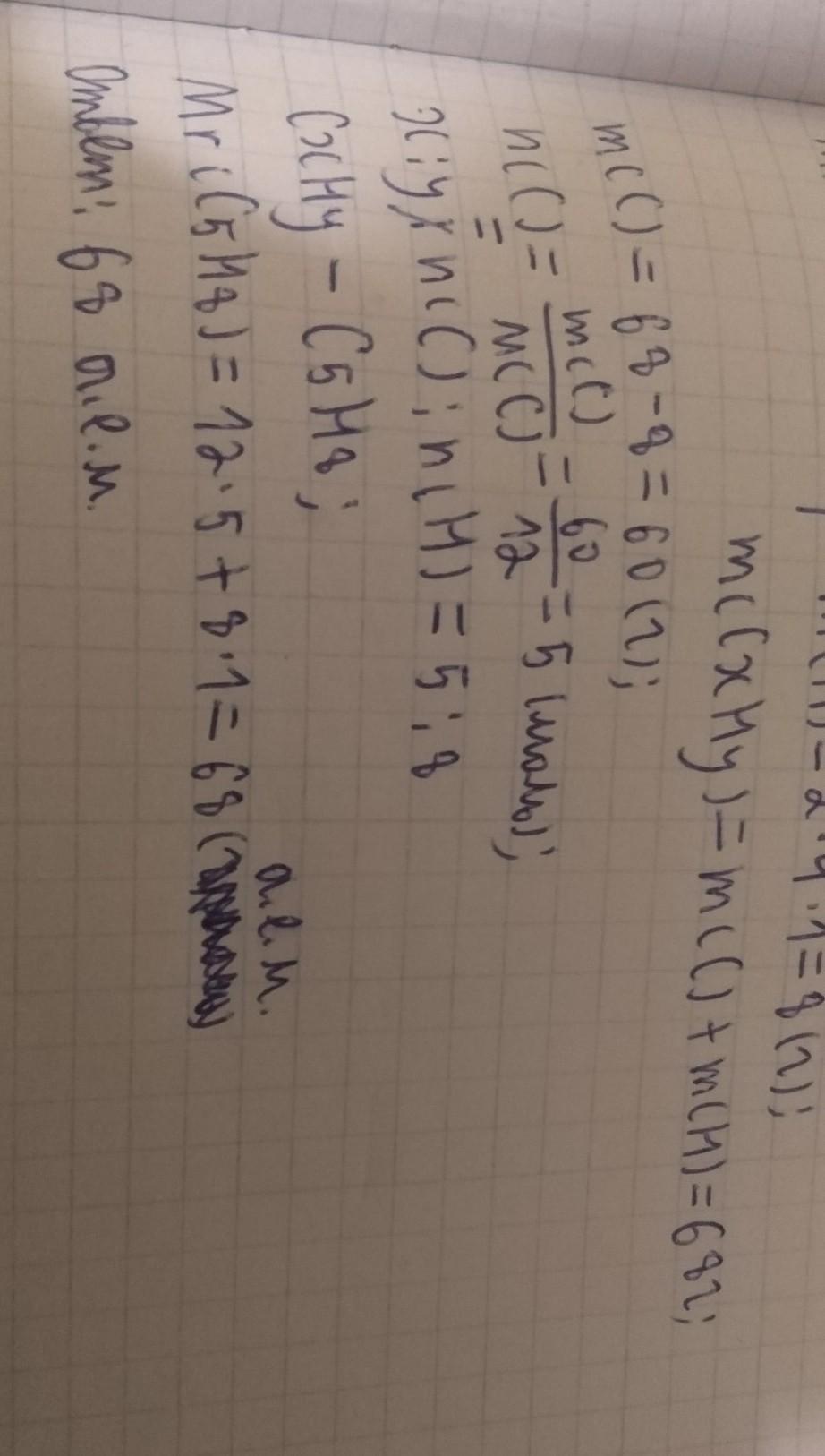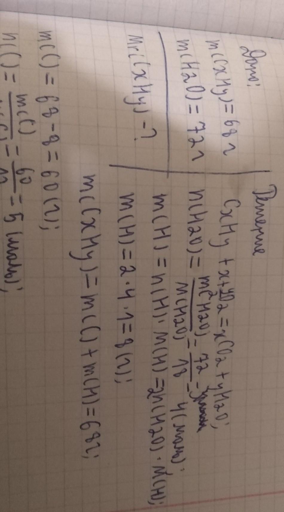 При сгорании 68 г углеводорода образовалось 72 г воды. Определи формулу углеводорода. Вычисли относительную молекулярную массу и запиши её значение. (Точность промежуточных вычислений — до десятых.)