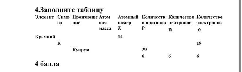 4. Углерод; C; углерод; 12; 6