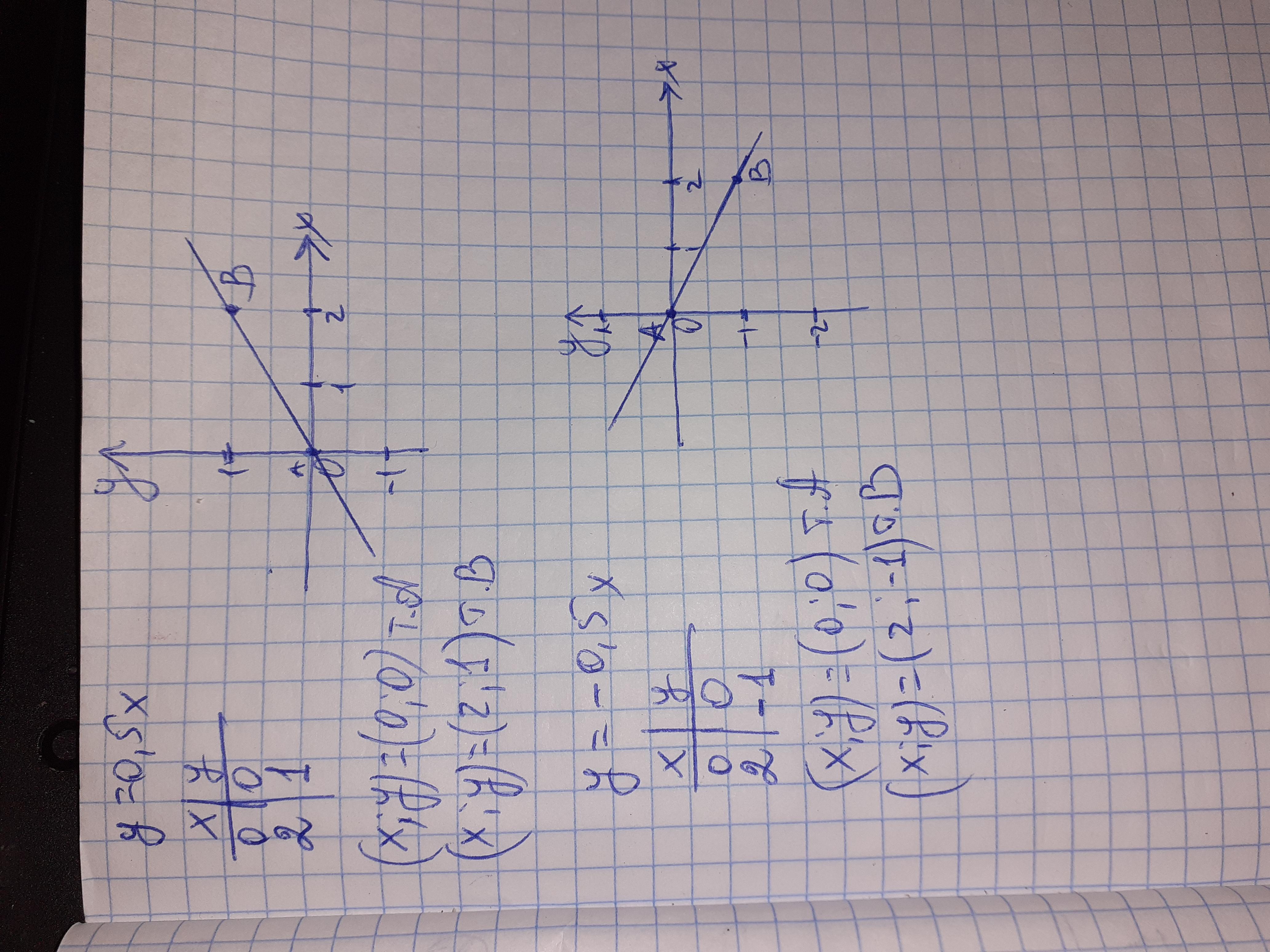 постройте график функции у=0,5х, у=-0,5х