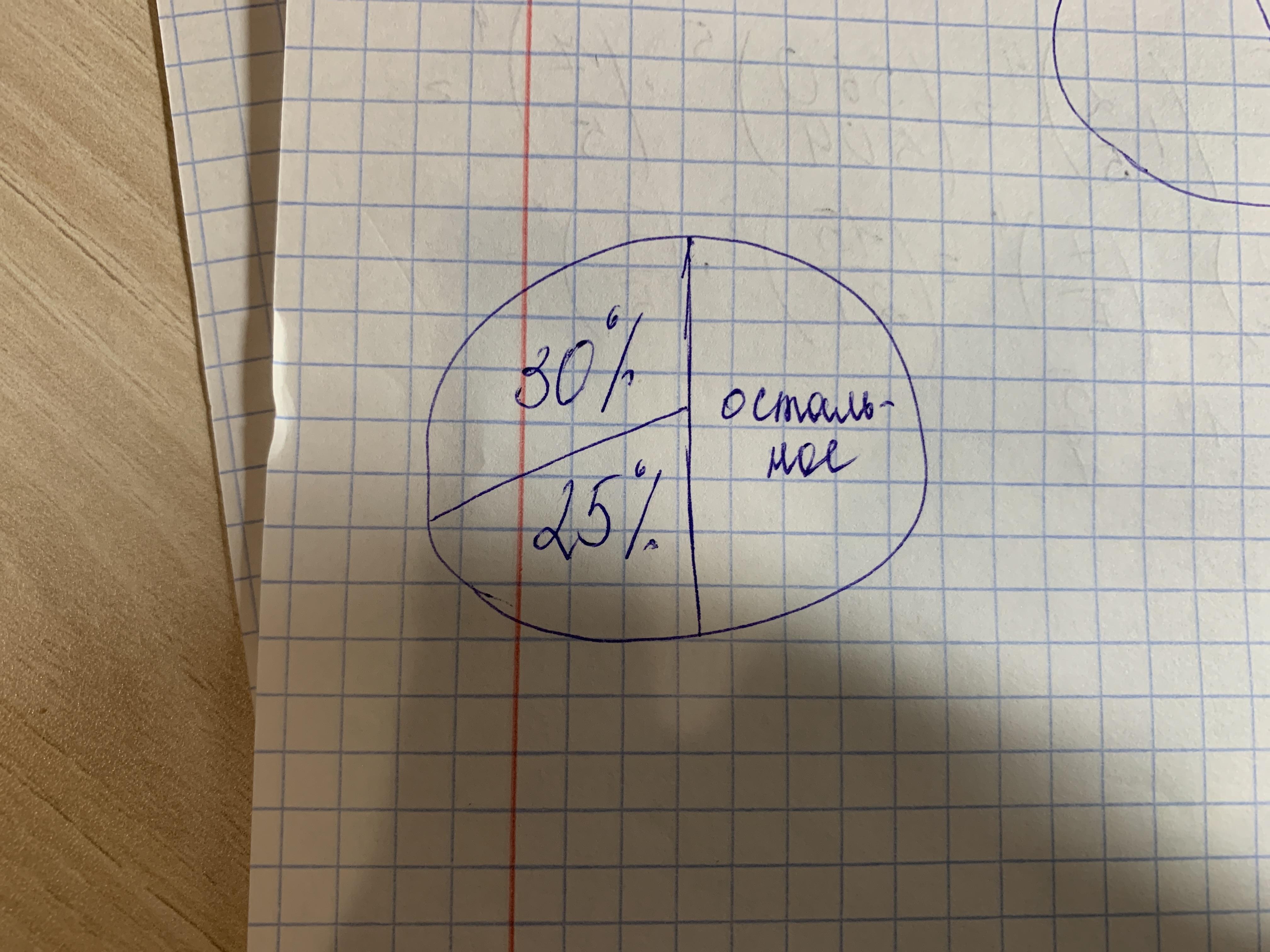ученик в первый день прочитал 30% всей книги, а второй 25% всей книги, а в третий остальную часть. покажите это на круговой диаграмме. помогите пожалуйста срочно нужно!!!!