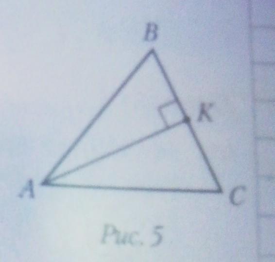 В треугольнике ABC (рис. 5) АК — биссектриса, угол AKB = 90°. Если AC = 12 см, ВК = 5,5 см, то периметр треугольника АВС равен: