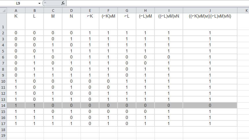 Если построить таблицу истинности для логического выражения, то из нее видно, что оно будет ложным только лишь при следующих значениях переменных: