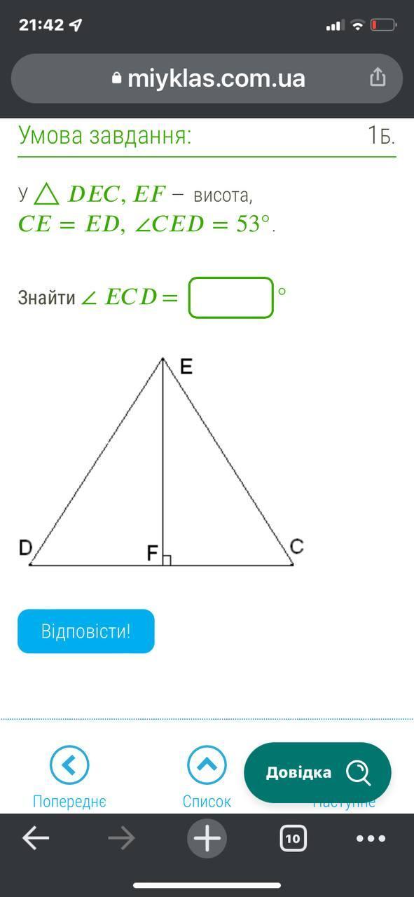 <ЕСD=<EDC=(180-<CED)/2=(180-53)/2=