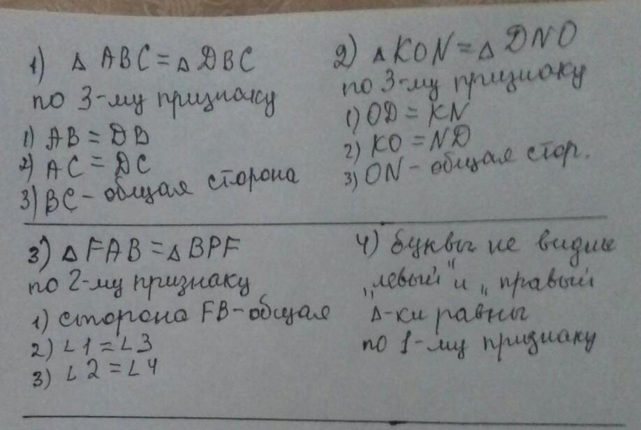 УМОЛЯЮ ПОМОГИТЕ,ПОЖАЛУЙСТА РАЗОБРАТЬСЯ!! НАйДИТЕ ПАРЫ РАВНЫХ ^ (треугольников) и докажите их равенство (указать признак) УМОЛЯЮ!!!ДАВАЙТЕ ПОЖАЛУЙСТА ЮЕЗ НЕЗНАЮ,ЧТОБ БАЛЛЫ НЕ ЗАБИРАЛИ,Я ВАС ПРОСТО УМОЛЯЮ!!