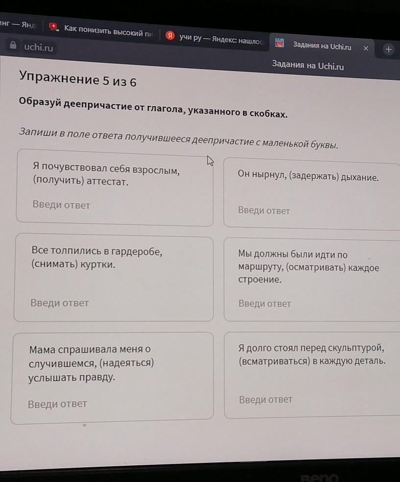 (получить) получая; (снимать) снимая; (надеяться) надеясь; (задержать) задержав; (осматривать) осматривая; (всматриваться) всматриваясь