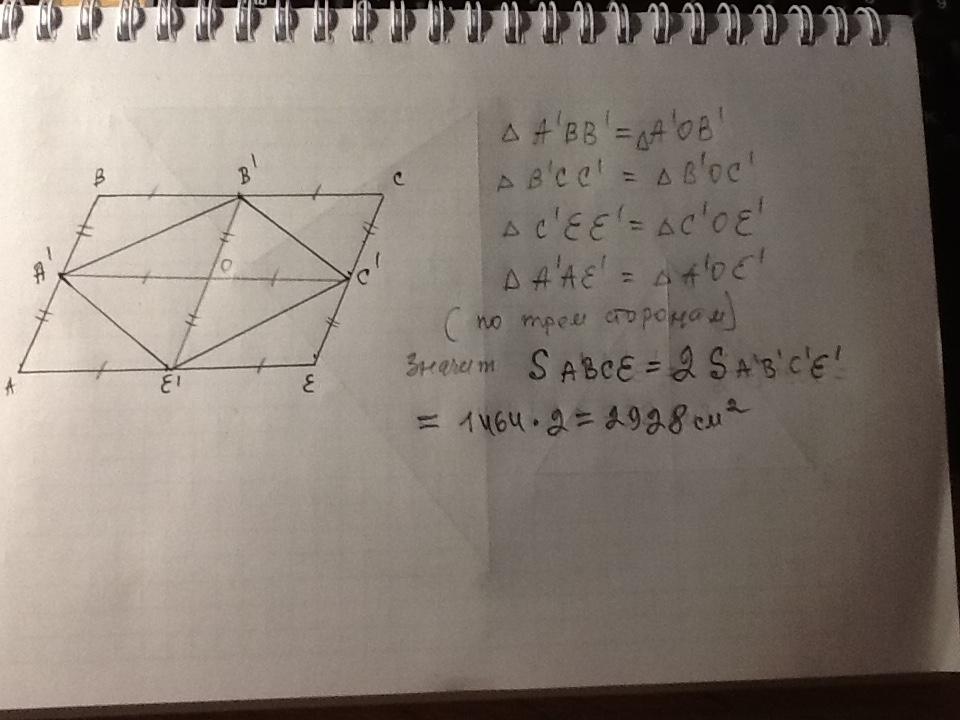 Чему равна площадь параллелограмма, вершинами которого являются середины сторон параллелограмма с площадью 1464 1464 см ^2 ? Вырази ответ в см ^2