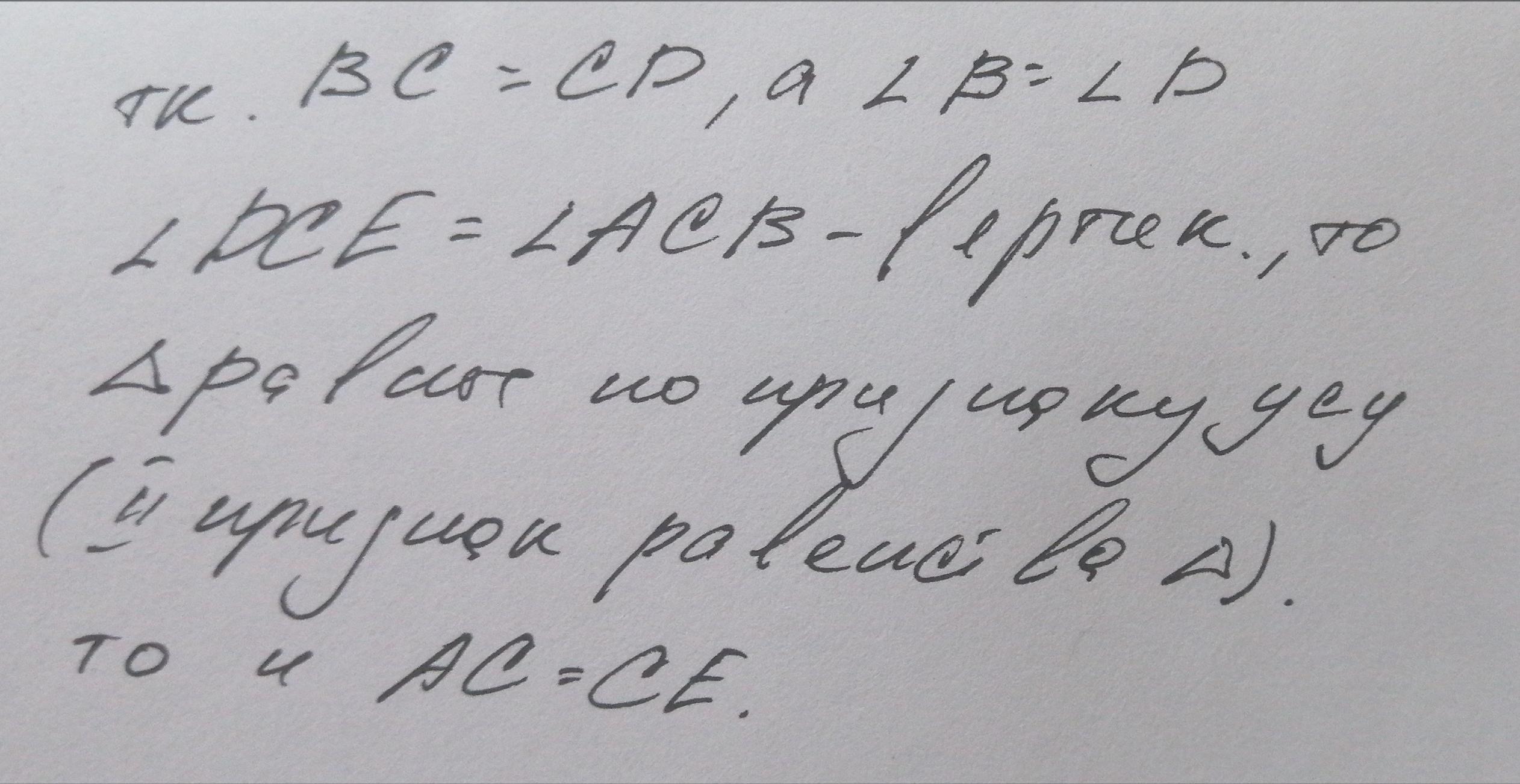 След, ΔDCE=ACBΔ -стороне и двум прилежащим к ней углам.