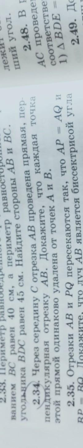 2.34. Через середину С отрезка AB проведена прямая, пер- пендикулярная отрезку AB. Докажите, что каждая точка этой прямой одинаково удалена от точек А и В.