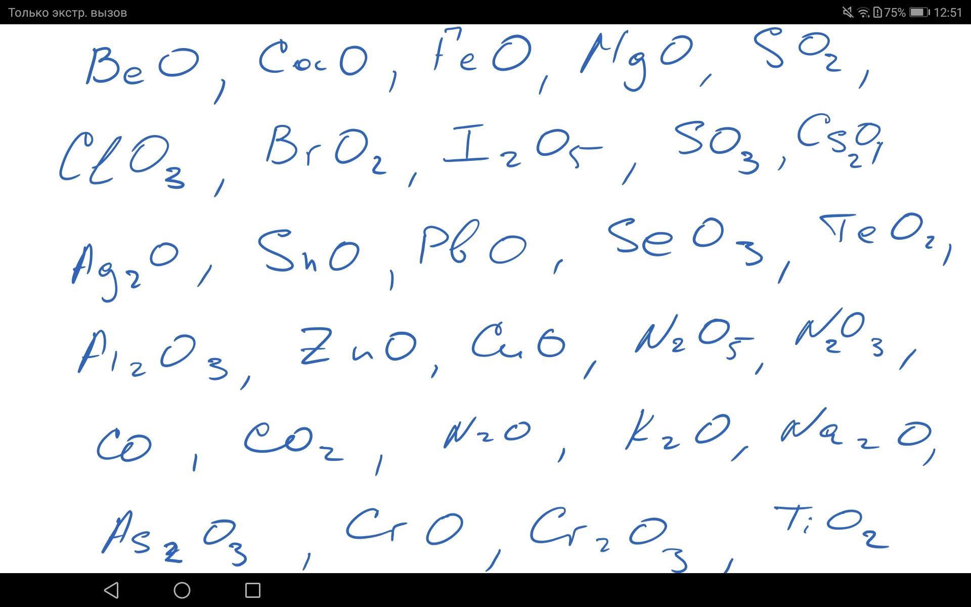 BeO, CaO, So2, HgO,ClO3, SO3, Hg2O, PbO, SeO3, TeO2, ZnO, CuO, N2O5, N2O3, Co, co2, N2O, K2O, Na2O, As2O3