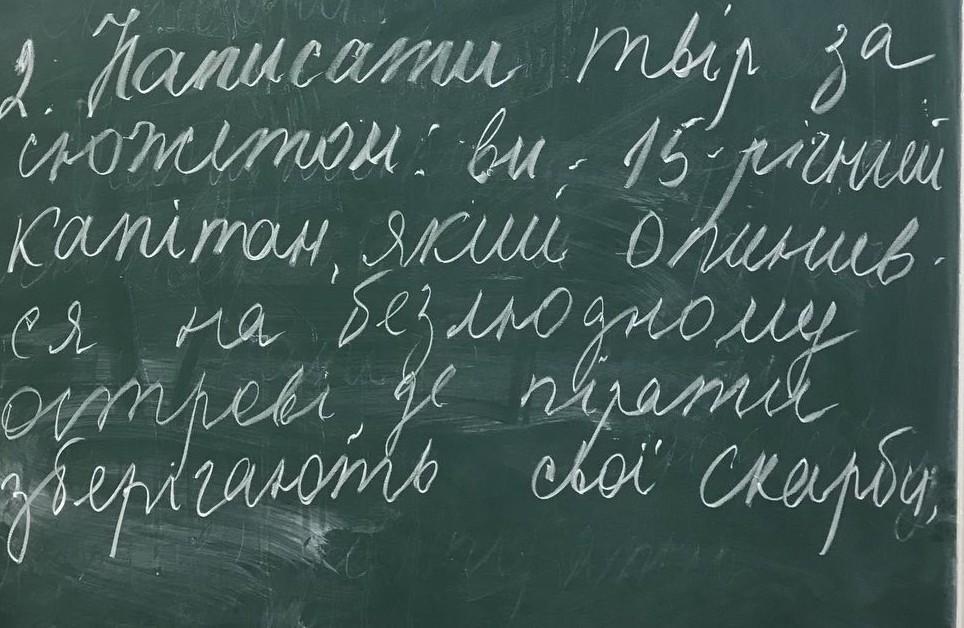Йшов корабель по морю. Нічого не віщувало біди, як раптом моє судно натрапило на підводну скелю. Пробоїна, корабель почав сильно нахилятися на лівий бік...впав у воду; більшість екіпажу успішно евакуювалася, проте капітану та 15 матросам не хватило місця, і вони були змушені плисти на уламках корабля. Через 5 годин почався шторм - та більшість загинуло, проте капітану пощастило -- та хвилею викинуло на берег. Опинившись на безлюдному острові, капітан пройшовся взад вперед та збудував намет. Знайшов харчі, воду -- стало легше. Проте він не залишав думки покинути острів. Згодом, він збудував судно, яке успішно попливло у напрямку Щасливої Землі -- місця, де живуть люди, дому для кожної Людини на Землі.