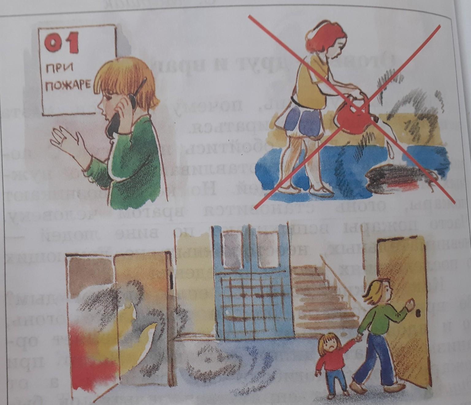 рассмотрите рисунки и составьте правила поведения, которые необходимо выполнять при пожаре.