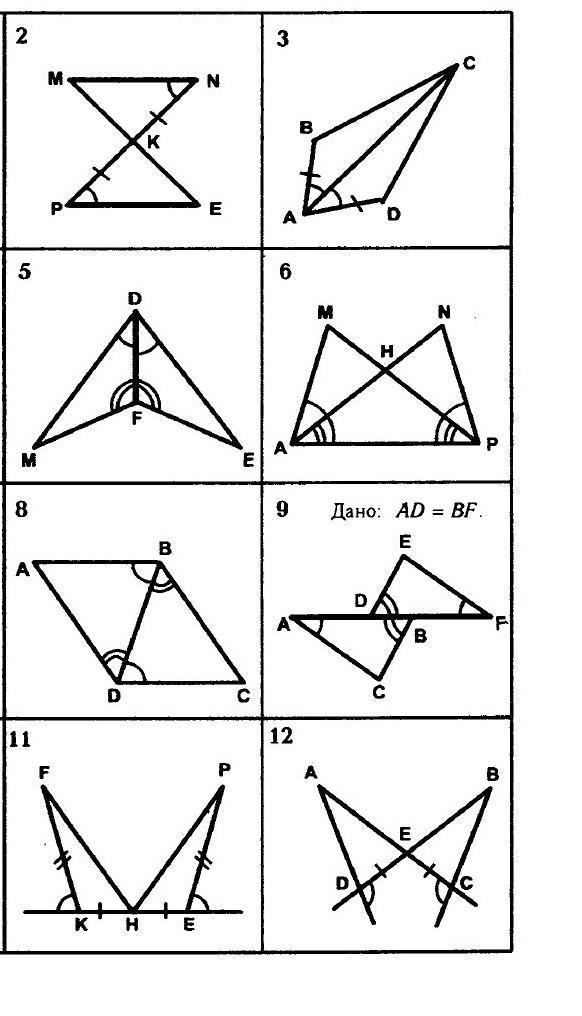 по стороне и двум прилежащим к ней углам №2, 5, 6, 8, 9, 12
