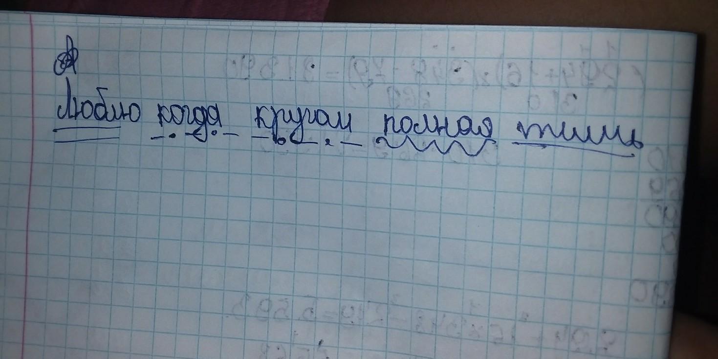 Люблю(====) когда(-·-·-·-·) кругом(-·-·-·-·) полная(волнистой чертой) Тишь(____).